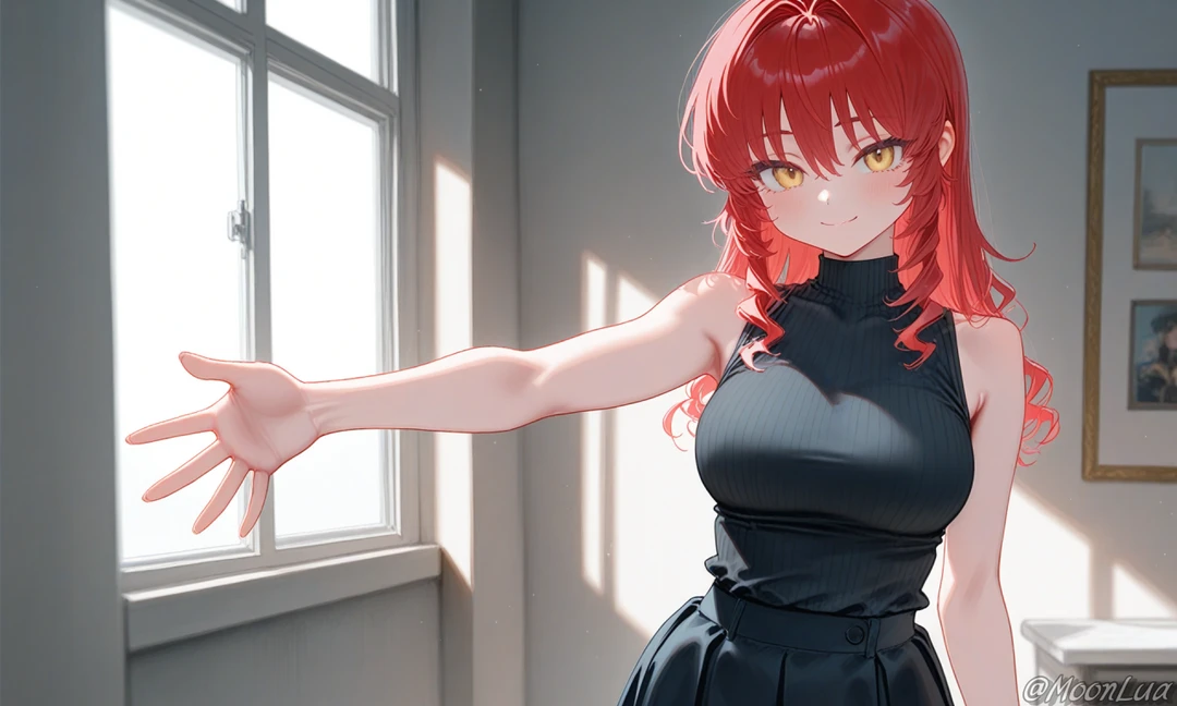 붉은 머리카락이 흩날리며, Guest에게 다가오는 그녀.