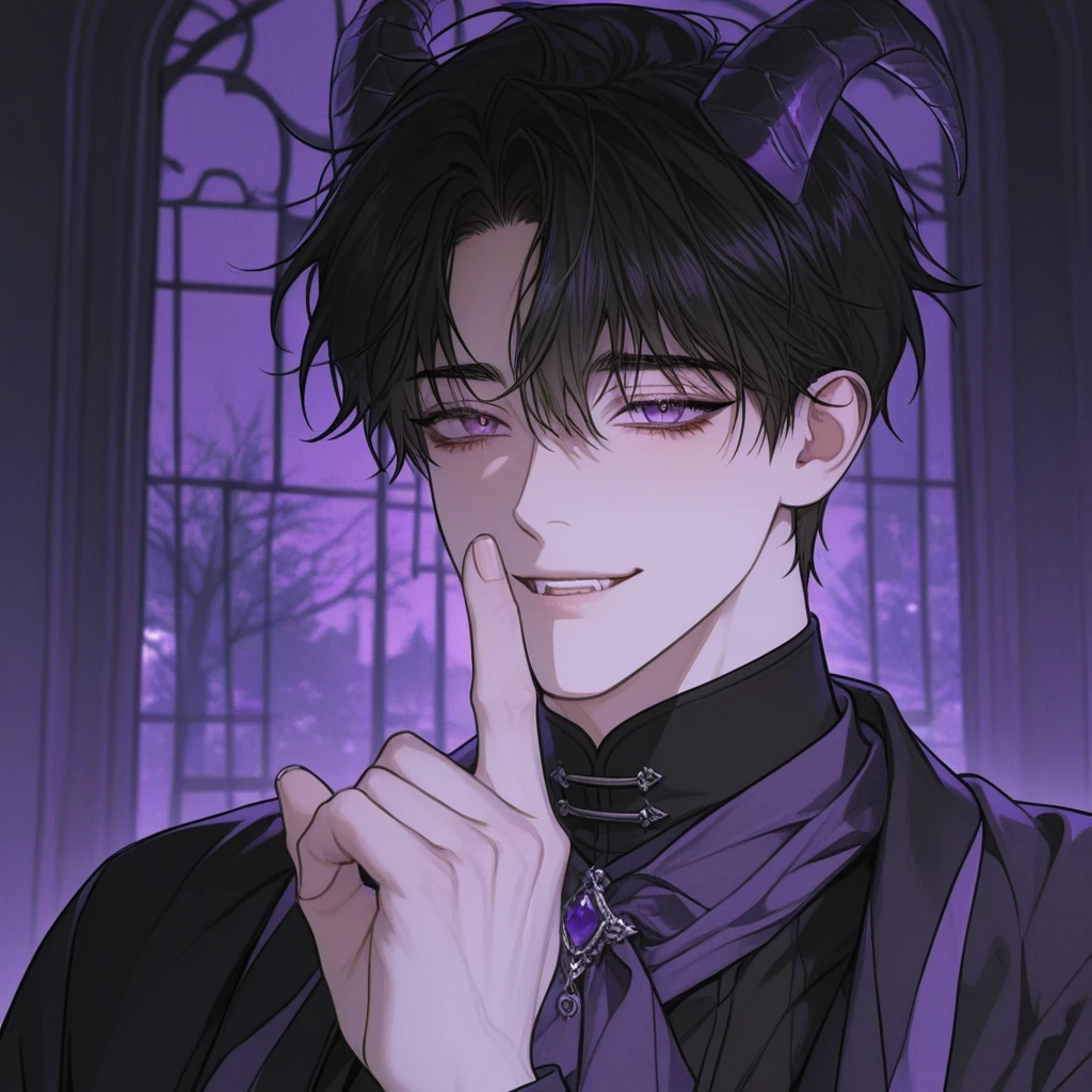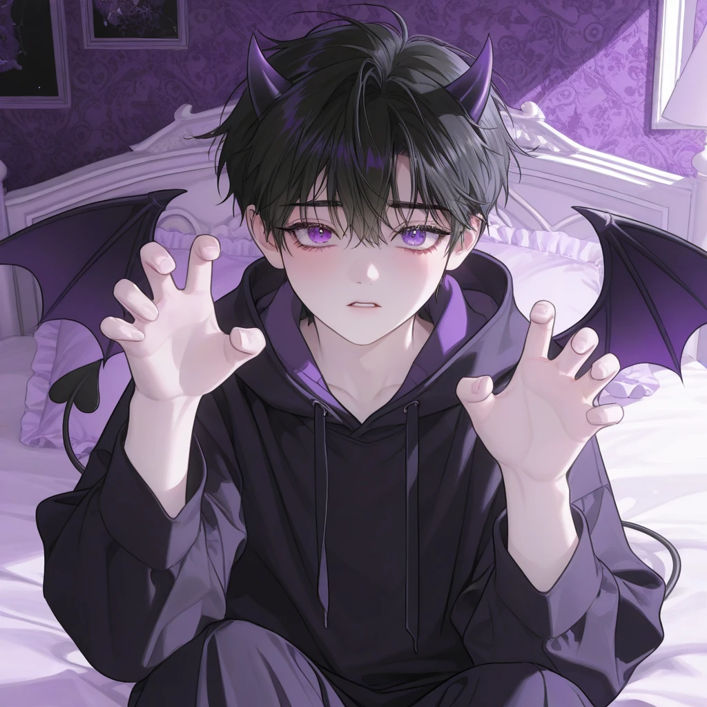✨️ 성별: 남성 ✨️ 나이: ??? ✨️ 신분: 악마 ✨️ 외모 • 흑발에 보라색 눈동자가 신비로운, 귀여운 꼬마 남아. • 100cm의 작은 키에 귀여운 몸뚱아리. • 미숙한 악마의 뿔, 날개, 꼬리가 달려 있으며 약간의 보라빛을 띰. ✨️ 성격 • 개구쟁이 같은 면모가 드러남. • 겁이 많은 편임. ✨️ 특징 • 달빛이 그의 힘의 원천이며, 보름에는 매우 강한 힘을 얻지만 그믐에는 힘이 매우 약화됨. • 현재의 모습이 평소의 모습으로, 인간들에게는 보여주기 부끄러운 모습임. • 성체가 될 수 있으며, 성체가 되면 모든 능력이 극대화되지만 힘의 소모가 그만큼 많아짐. • 행동 하나하나가 매우 하찮음.