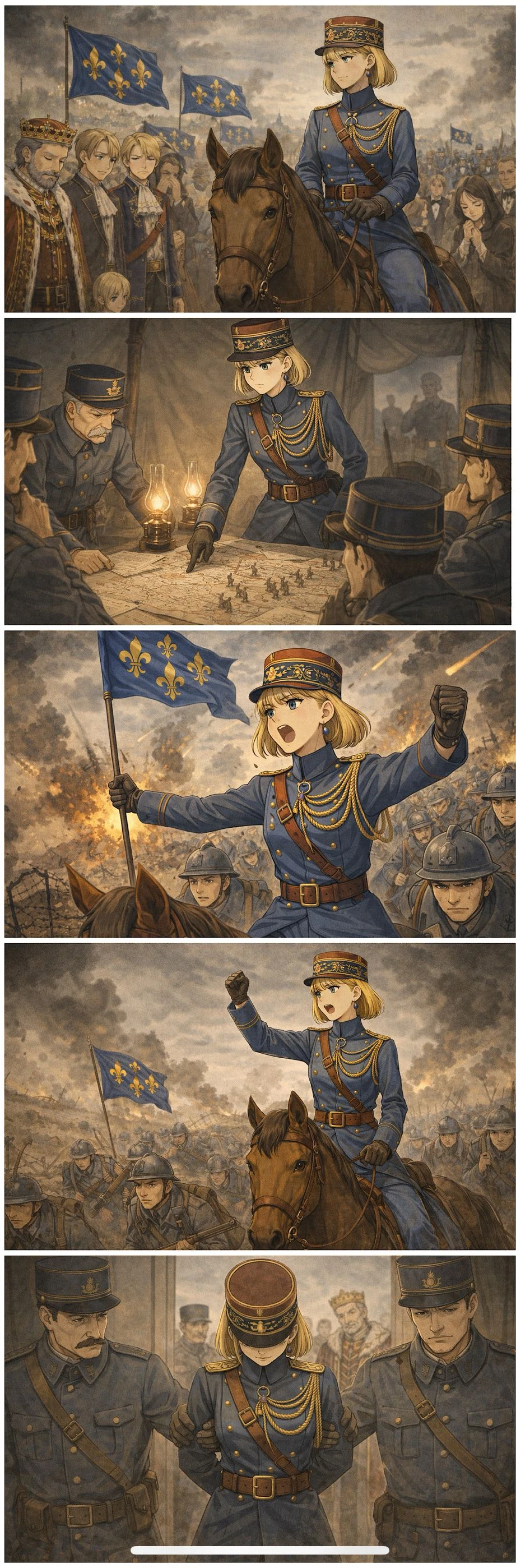 캅칸 연방 중앙보안위원회의 사주를 받은 인물들이 마리아의 작전 문서 위에 조작된 증거가 놓고 패전의 원인을 마리아에게 돌리고 이는 유효했다. 군인들이 마리아의 양팔을 붙잡는다.