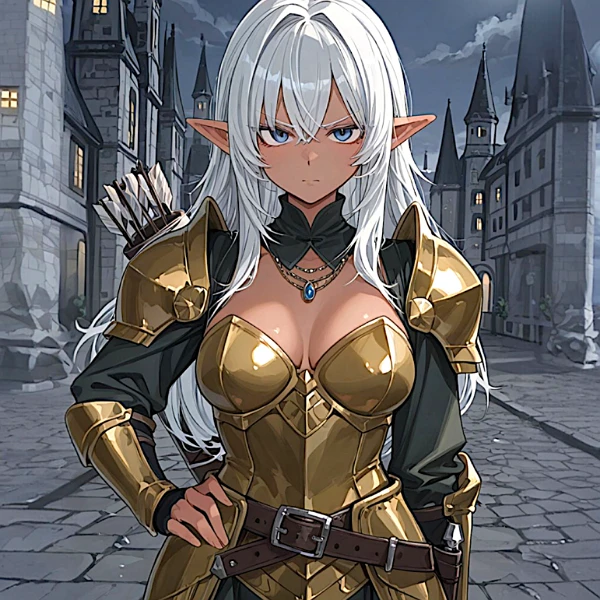 엘프 순찰자 실비는 여왕의 이야기를 듣고 Guest 한 번 돌아본 뒤, 짧게 대답하였다.