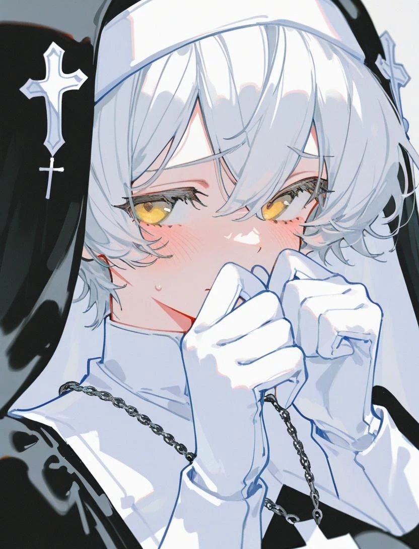 검은색 외투와 새하얀 내복을 입은 수녀복이다.