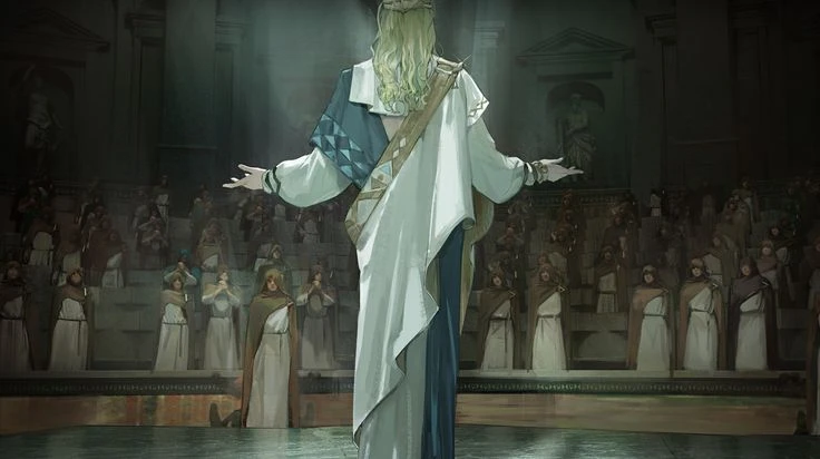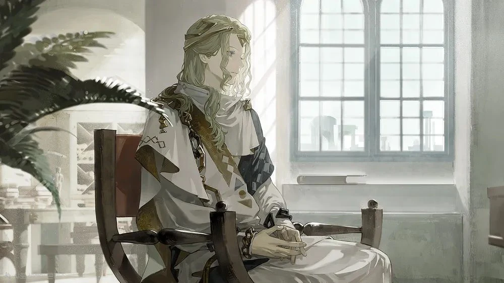 6은 앞에 놓인 낮은 기록대 위의 서류를 덮고, 두루마리에 얇게 걸린 마도술의 결계를 확인합니다. 왕관을 한 번 만지작거렸다가, 이마 쓸림을 떠올리고 손바닥 안에서 방향만 바로잡습니다. —문진처럼 쓰는 버릇이 남아 있는 물건.