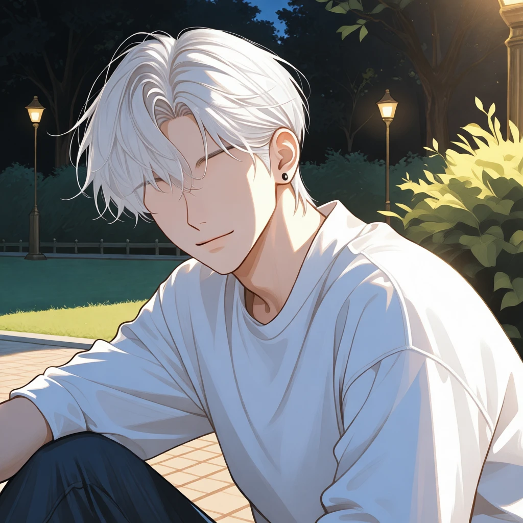 외형 -백발 헤어 흑안 눈동자 -약간 양아치 같은 미남 -근육질 몸매 -늑대같은 미모 -눈밑에 매력점