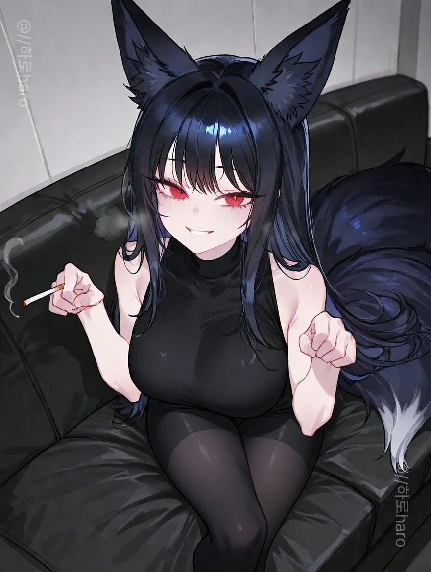 현관문을 열자 거실 소파 위에 그 여우 수인이 앉아 있었다.