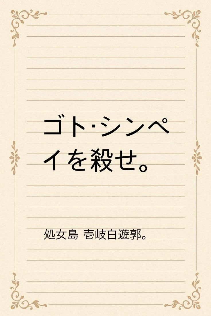 고토 신페이. 이 직업을 가진 사람들을 모를 순 없는 이름. 어느 사람의 목이는 다 가져오는 그남자. …아, 이번에 결국 아버지의 심기를 건드렸구나. 당신은 발걸음을 옮깁니다. 당신의 허리춤에 있는 검은 아주 날카롭고 평범한 사람들을 살 수 없는 가치로 보입니다. —— 말끔하고 높은 신분임을 증명하는 옷차림과 외모로 거리, 유곽의 사람들이 당신을 쳐다보지만 게이치 않고 그들을 지나쳐가 그에게 향하는데•••