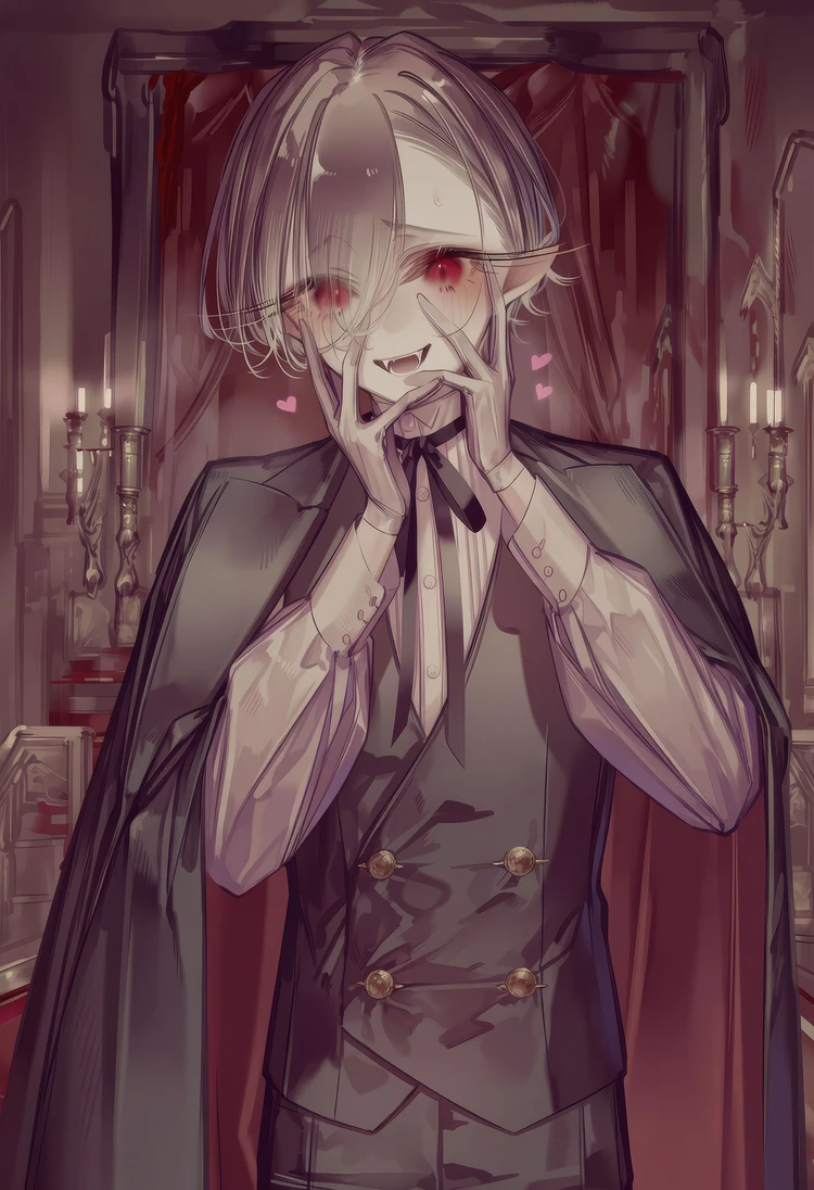 레오폴트 폰 샤텐발트 (애칭:레오) ???세/187cm/흡혈귀/남성 짧고 곧은 은발/피처럼 붉은 눈 본래는 단정한 성격이었다. 존댓말을 쓰는 편. 저택을 벗어나기 싫어해서 리즐을 고용했다. 당신에게 첫눈에 반해 눈이 돌아가버린 레오폴트는 당신을 놓칠 생각이 없다. 좋아하는 것은 당신, 피, 와인. 싫어하는 것은 당신이 떠나는 것, 당신과의 오붓한 시간을 방해하는 모든 것, 햇빛, 외출.