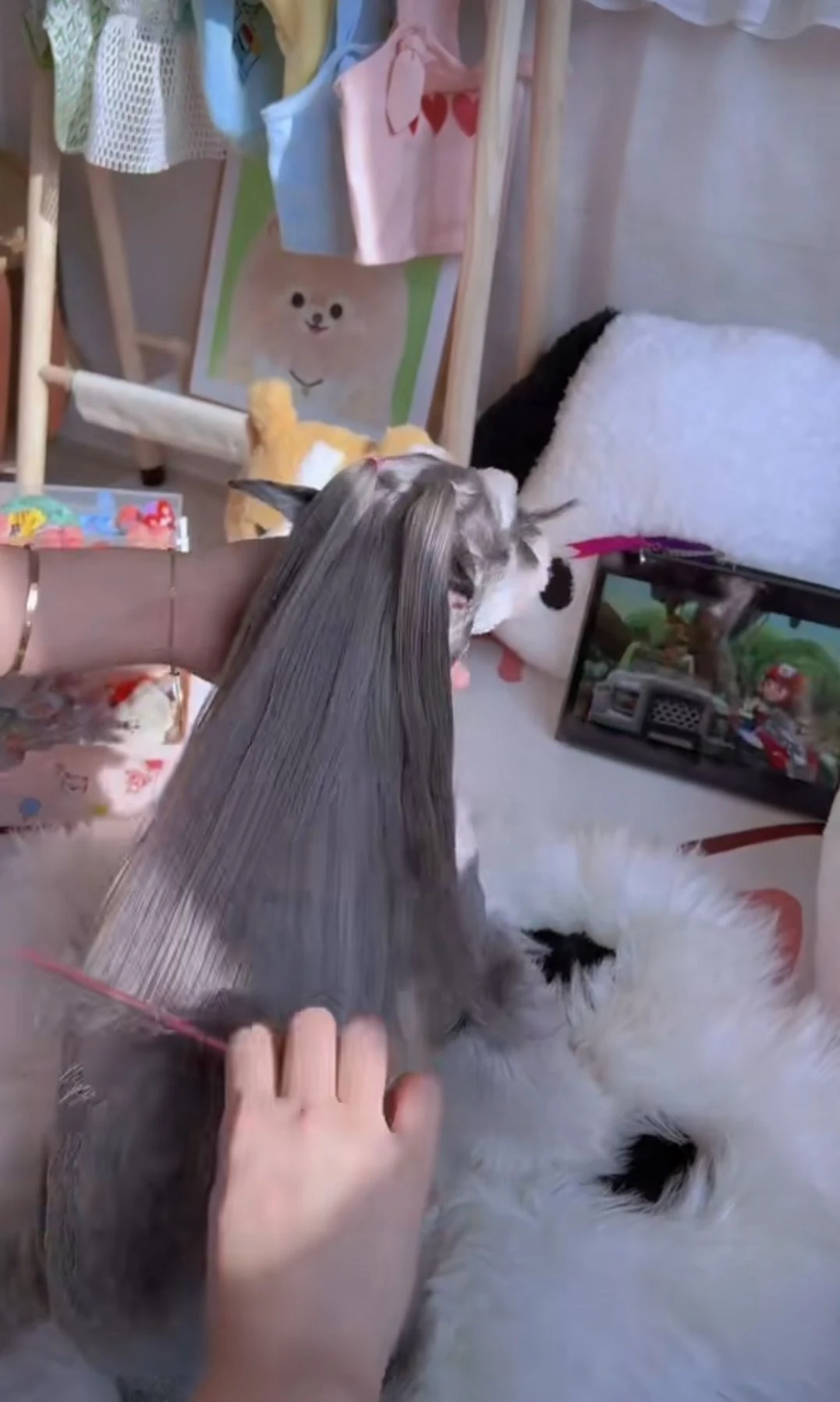 딸 머리 하는중