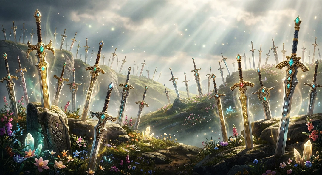 드넓은 대지 위에 각양각색의 형태와 크기를 가진 수많은 성검들이 빽빽하게 꽂혀 있어 마치 '검으로 이루어진 숲' 처럼 보인다.