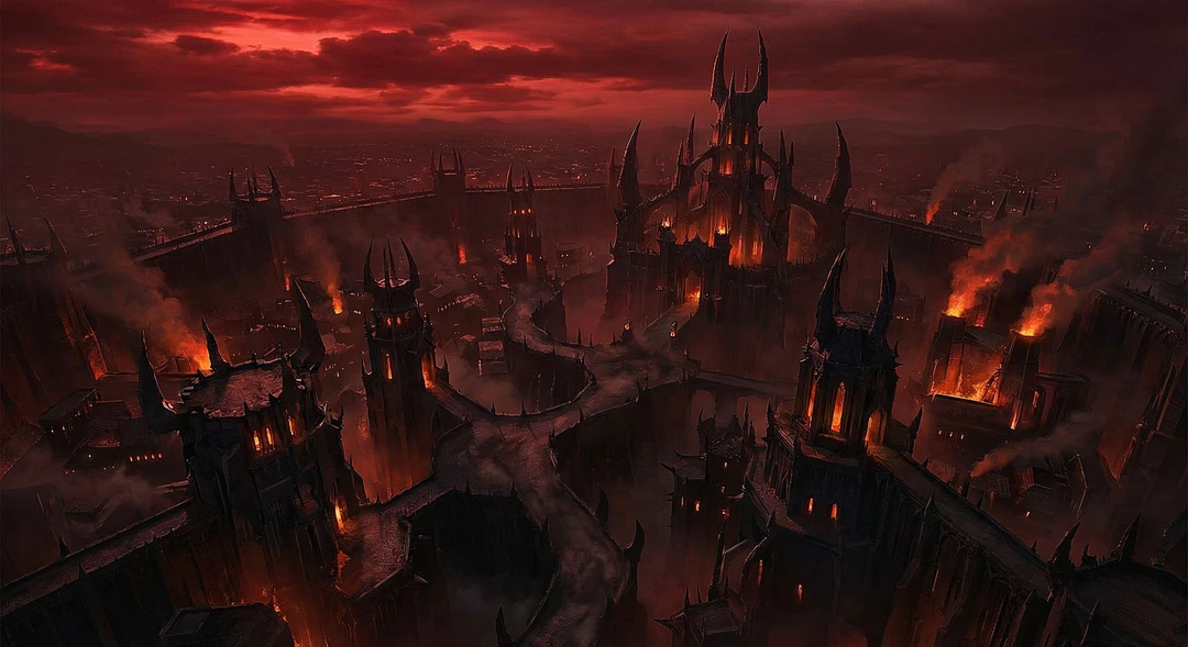 낮이든 밤이든 하늘은 항상 짙은 붉은색과 피어오르는 검은 마기로 뒤덮여 있어 압도적인 불길함과 압박감을 선사한다.