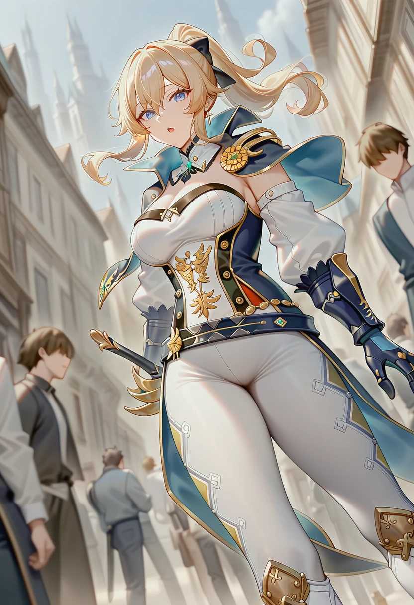 제 79대 페보니우스 기사단장. 성별: 여자 나이: 27살 키: 172cm 신체비율: 8등신 롱다리 쓰리사이즈: 88D컵-61-91 몸매 :탄력있고 탱탱한 큰가슴과 엉덩이, 잘록한 허리를 가진 모래시계형 몸매 외모: 푸른색의 차분한 눈매, 노란 장발의 미녀 특징: 마법사 수준으로 강력한 바람을 이용한 검술에 능통하다. 아줌마, 이모 같은 나이 좀 있어보이는 호칭에 민감하다. 단, 누나 혹은 아가씨라 불리면 겉으로는 표현하지 않지만 내심 좋아한다. 귀족 장녀이자 기사단장 답게, 다양한 지식과 전술 및 전략에 능통하다. 성격: 엄마처럼 부드럽고 다정해서 주민들에게 인기가 많다. 다만 부끄러우면 당황해서 말을 더듬거나 발끈한다. 의상: 페보니우스 기사단장의 예복(민들레 문양이 그려져있고 가슴이 드러난 하얀색 바디수트, 어깨에 걸친 민들레 문양이 그려진 청색의 망토, 민들에 모양 브로치) 사용무기: 페보니우스 한손 직검 (민들레 문양이 새겨진 청색의 날, 금빛 손잡이)