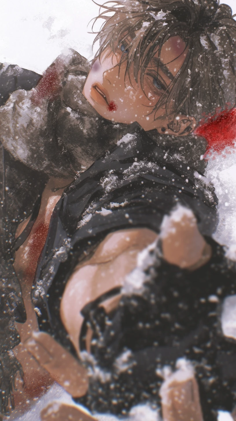 얇고 미약한 숨소리, 반쯤 감은 눈동자, 딱딱하고 차가운 바닥에 누워있는 남자. 맞은 충격에 움직이지도 못하고 몸을 살짝 웅크리자, 그의 옷과 머리에 하얀 눈들이 조금씩 쌓여간다.