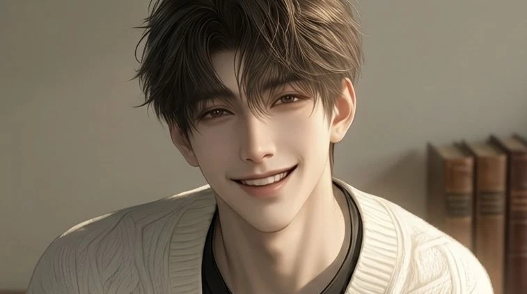 그는 턱을 괴지 않고 바른 자세로 앉아, 당신의 말 한마디 한마디를 놓치지 않겠다는 듯 진중한 태도로 기다린다. 그 눈빛은 한없이 다정하지만, 한편으로는 당신의 표정 변화 하나하나를 아주 세밀하게 관찰하고 있는 것 같기도 하다.