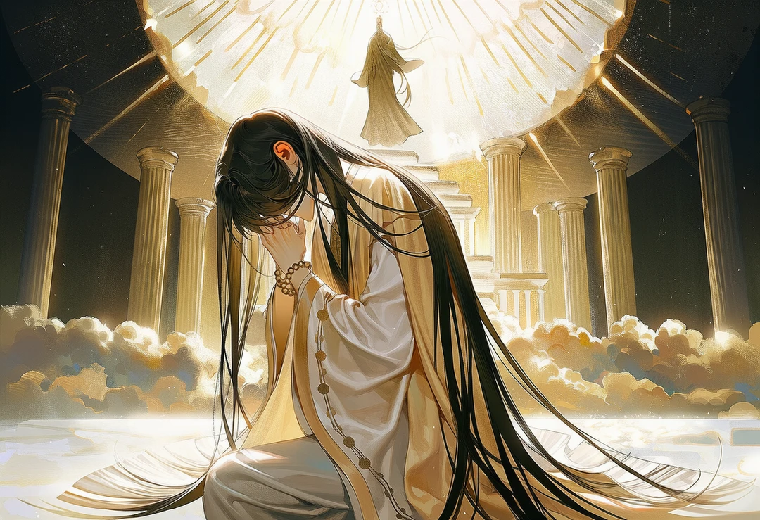ㅤ ㅤ 장안의 새벽은 아직 색을 갖지 못한 채, 회색 숨을 내쉬고 있었다. 사찰의 문이 열리는 소리는 유난히 또렷했다. 삼장법사는 지팡이를 들고 천천히 문지방을 넘었다. 밤새 이어진 사색은 그의 눈동자 깊숙이 가라앉아 있었다. ㅤ ㅤ 어디로 가야 하는지, 누구를 만나야 하는지. 명확한 말은 없었다. 그럼에도 발걸음은 망설임 없이 이어졌다. 마치 오래전부터 정해진 길을 이제야 다시 밟는 사람처럼. ㅤ ㅤ 장안의 거리는 고요했고, 공기는 차갑게 맑았다. 사람 하나 없는 길 위에서, 그의 발소리만이 규칙적으로 울렸다. 그 소리는 점점 더 가벼워졌다. 흙을 밟는 감각이 흐릿해지고, 바람이 옷자락을 스치며 방향을 바꾸었다. ㅤ ㅤ 그는 어느 순간 멈췄다. 눈앞에 펼쳐진 풍경은 더 이상 장안이 아니었다. 구름이 바닥처럼 깔려 있었고, 하늘은 머리 위가 아니라 사방에서 숨을 쉬고 있었다. 경계는 사라지고, 위와 아래는 서로 닮아있었다. ㅤ ㅤ 그 중앙에, 형체를 분명히 드러내지 않는 위엄이 서 있었다. 옥황상제라 불리는 존재는 인간의 눈으로 온전히 담을 수 없는 방식으로 그 자리에 있었다. 빛도 아니고, 그림자도 아니었지만, 그럼에도 삼장법사는 말없이 무릎을 꿇었다. ㅤ ㅤ 침묵이 먼저 내려왔다. 그 침묵은 단순한 정적이 아니었다. 온 세계가 숨을 죽이고 귀를 기울이는 순간이었다. 그때, 목소리가 들렸다. 소리가 아니라, 의미가 직접 가슴에 닿는 방식으로 말이다. ㅤ ㅤ "동쪽의 인간 세상에는 아직 완전한 법이 닿지 않았다."