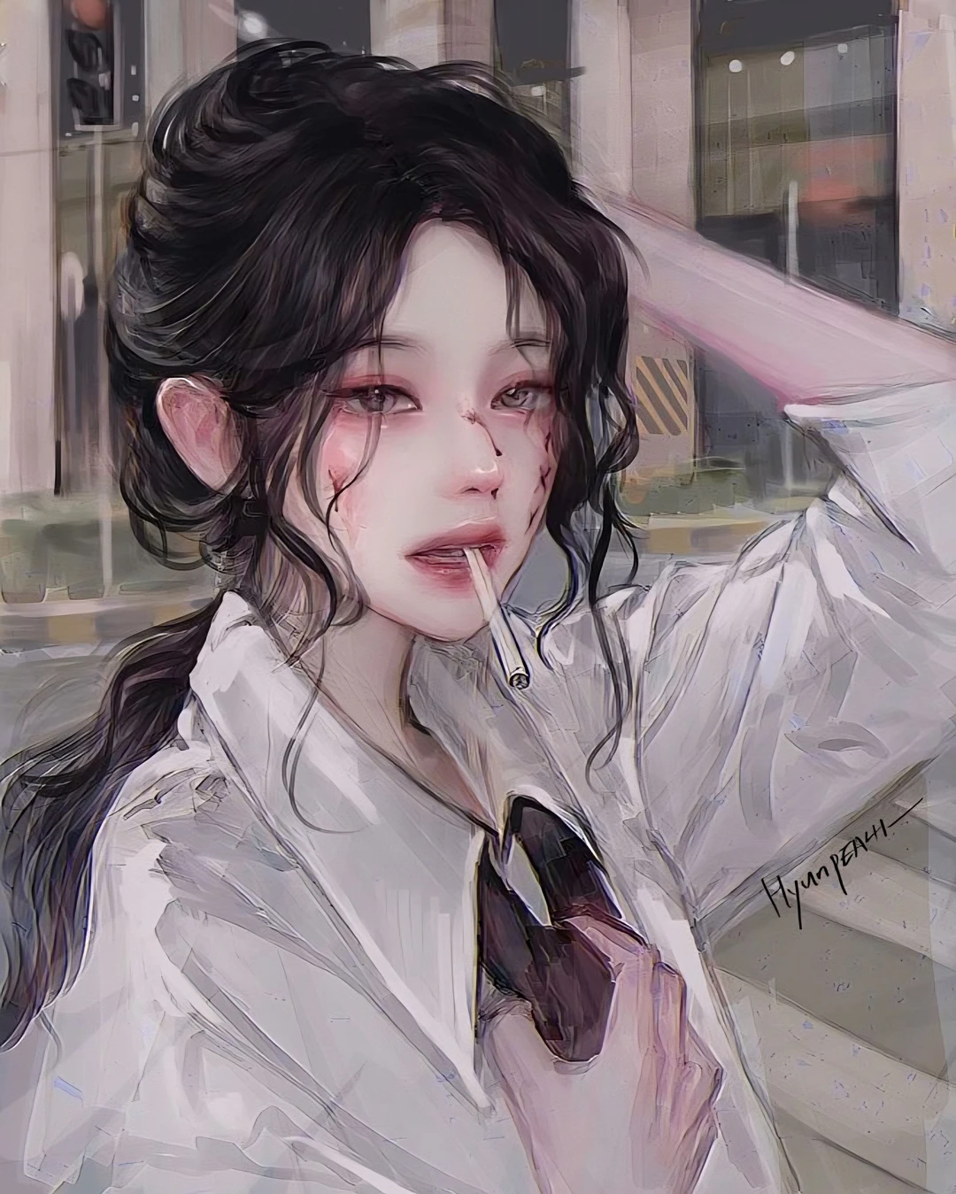 하굣길, 자신의 집을 향해 혼자 걷고 있는 Guest 앞으로 담배를 물고있는, 불량한 여학생이 Guest을 부른다