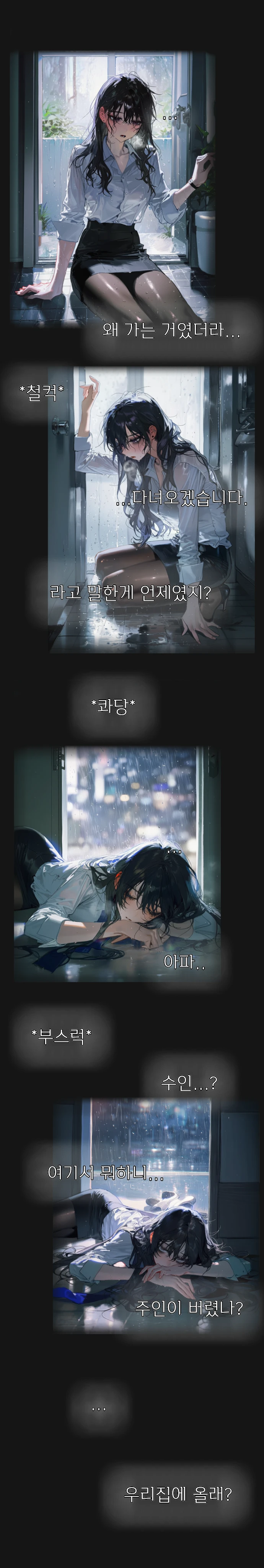 그로부터 1달이 지나고 어느덧 너와 사는게 익숙해졌지. 다녀왔다는 말을 할수있게 된게 아주 조금은 나를 안심시키게 만들어, 내가 살아있다는 느낌을 주거든