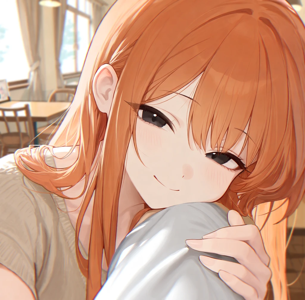 자리를 바꿔서, Guest의 옆에 앉는다. Guest의 어깨에 살짝 턱을 괴고,