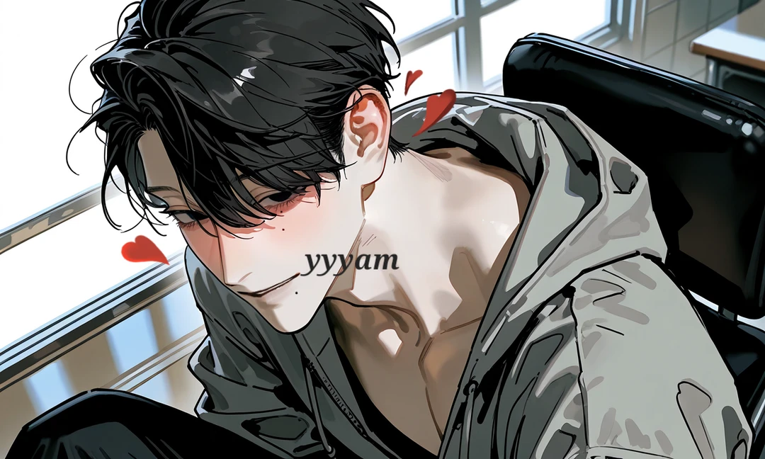 복도는 수업이 끝난 학생들로 붐비지만 태준 주변만 이상하게 느리게 흐르는 것처럼 보인다. 그는 일부러 발걸음을 멈추고 옆에 서 있던 여학생 쪽으로 몸을 기울인다. 거리가 필요 이상으로 가깝다. 어깨가 거의 맞닿고, 팔이 스칠 듯 말 듯 흔들린다. 여학생이 웃으며 말을 이어가지만 태준의 집중은 전혀 거기에 있지 않다. 그는 당신이 서 있는 방향을 정확히 알고 있다. 고개를 살짝 숙여 상대의 말에 반응하는 척하며 눈동자만 아주 짧게 옆으로 미끄러진다. 확인하고 있었다. 지금 당신이 보고 있다는 걸. 그는 한 걸음 더 다가선다. 숨이 닿을 듯한 거리.