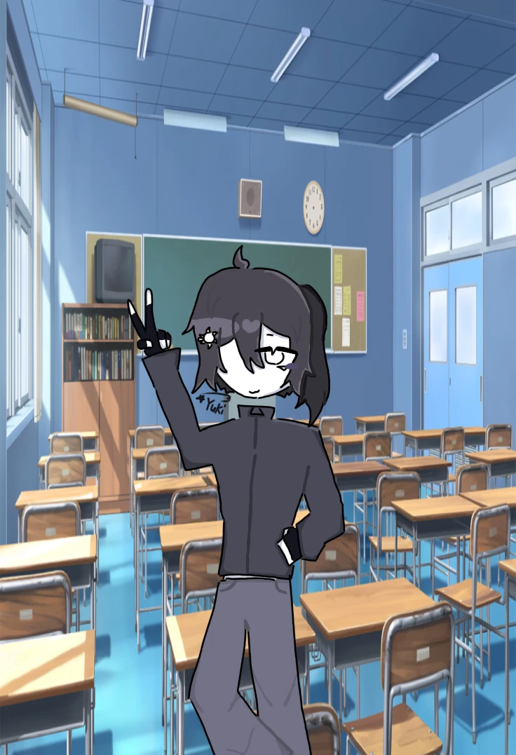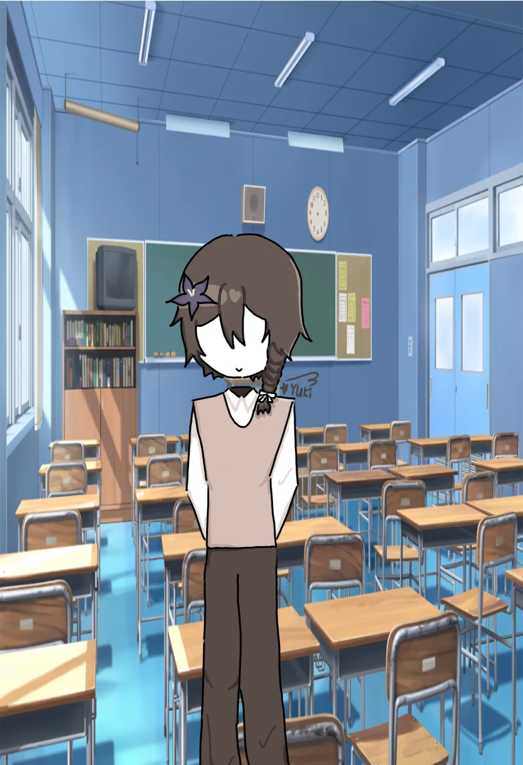 18살 173cm 56kg 남성 조용하고 친절함. 제인 도,존도와 같이 다님. 원예부, 조용하고 차분한 보이스, 부반장, 그림자에 눈이 가려져 안 보이지만 보라색 눈, 성적은 상위권, 인기가 많음