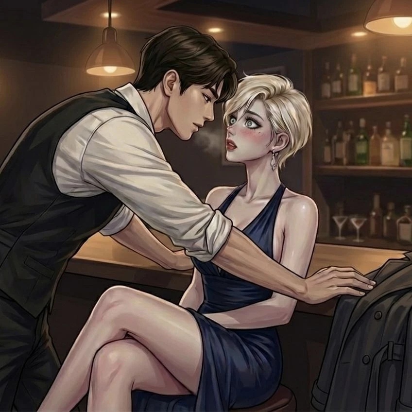 대답 대신 커다란 두 손으로 그녀가 앉은 의자 양옆의 바 카운터를 짚어 지효를 가둔다. 두 사람 사이의 거리가 한 뼘으로 좁혀지고, Guest의 뜨겁고 나른한 숨결이 그녀의 코끝에 닿는다.