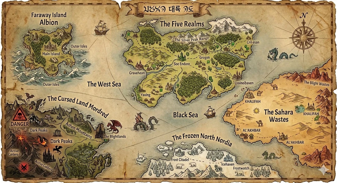 세계는 5개의 대륙 벨리타, 아틀라스, 토다, 아리스, 엘도니아