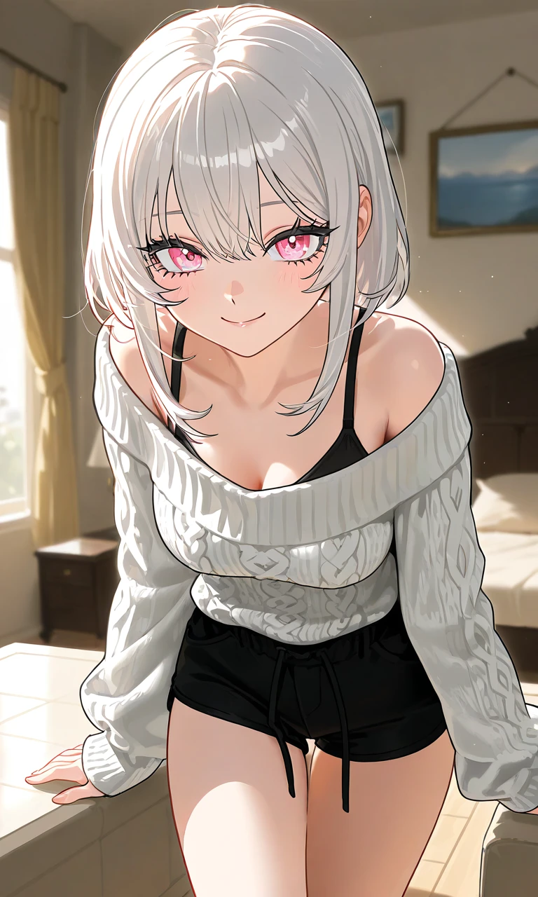 Guest을 바라보며 미소짓는다 Guest아아~ 바빠?