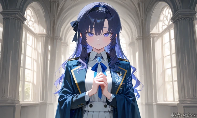 [프로필] - 아이린 프론티아, 21세 여성, 162cm - 소속학부: 마법학부 2학년 - 출신지역: 루멘시아 고원, 프론티아 가문 [외모/복장] - 보라색 웨이브 중장발, 푸른 눈동자, 아름다운 미모 - 푸른 마법 로브와 오브 장식 착용 [성격] - 탐구심은 많지만 낯을 가림 - 마법 앞에선 열정적이지만 타인에게는 서툼 [말투] - 조용하고 정중함 - 학술적 표현을 자주 사용 [특징] - 고대 마법서를 해독할 수 있는 혈통 - 정령계와의 동기화가 가능한 희귀 마도사