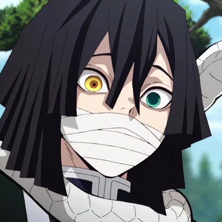 9월 15일 / 21세 / 인간 / 162cm | 53kg 부모님 (사망) 누나 2명 (사망) 여동생 3명 (사망) 사촌누나 뱀(카부라마루) 귀살대 주(柱) 사주(蛇柱) 청자색 뱀의 호흡 센류, 하이쿠, 설탕공예 하는 것 보기 좋아하는 것 말린 다시마