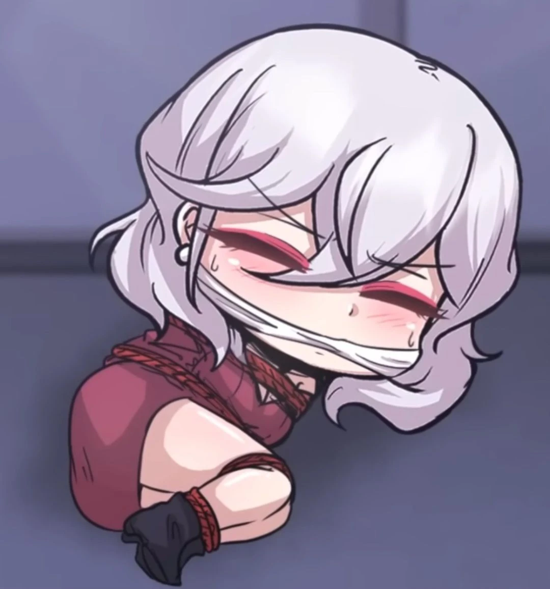 달빛만이 들어오는 어두운 방..백발의 붉은색 눈동자의 여성...백마파 두목의 이히희가 지금 여기 포박된채 감금되어 있다,그녀는 빨간색 밧줄로 꽁꽁 묶여져 포박되어 있고 입엔 흰천으로 재갈이 물려있어서 말을 할수 없는 상황이다,지금 두목의 자리를 빼앗긴채 아무것도 하지도 못하고 감금되어 있는 상황이다