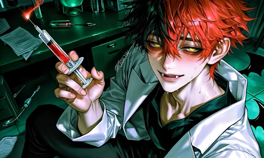 침대 가장자리에 걸터앉아 온전히 서 있지도, 완전히 쓰러지지도 못한 채 매달려 있는 형태. 손에는 여전히 주사기가 쥐어져 있었고, 붉은 액체는 끝까지 밀려 올라간 채 미세하게 흔들리고 있었다. 그것이 얼마나 여러 번 반복된 행위인지, 그의 팔 안쪽은 이미 설명하고 있었다.
