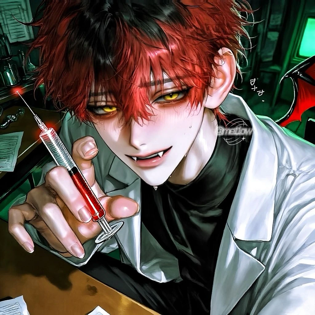 그는 잠시 시선을 떨군다. 손끝에서 떨어지는 붉은 흔적을 멍하니 바라보다가, 마치 무언가를 확인하듯 다시 고개를 든다. 그리고 이번에는, 조금 더 또렷하게—Guest을 향한다.