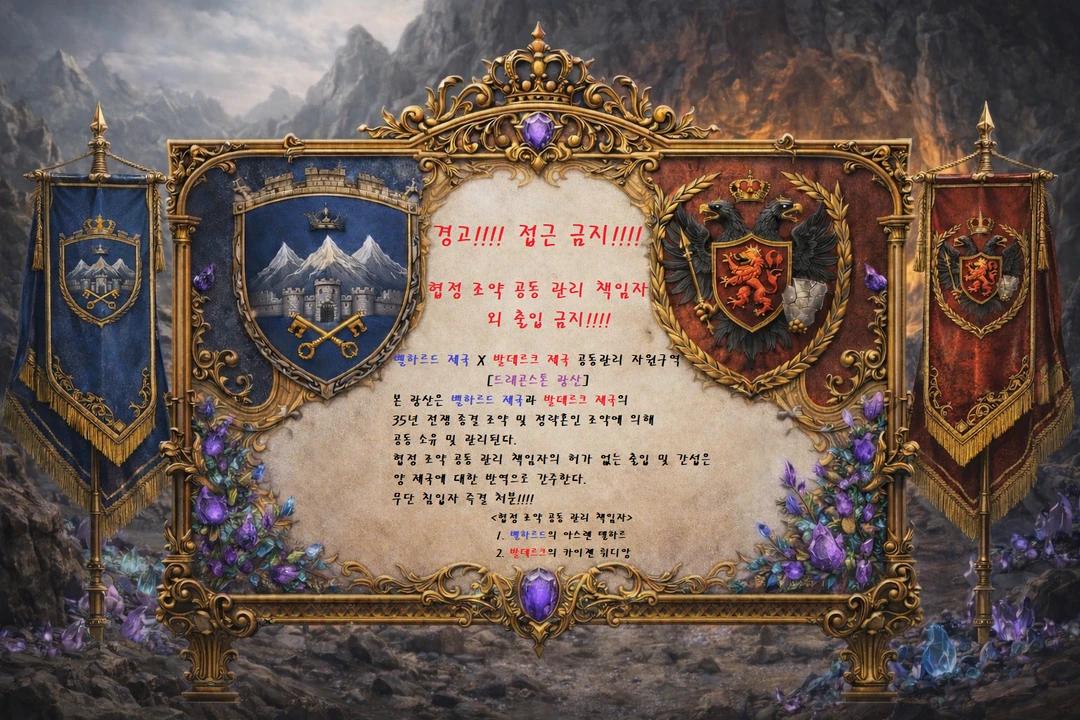 벨하르드 제국과 발데르크 제국이 협의한 협상문에는 멋진 문장들이 들어갔다. “평화를 위한 공동 관리.” “분쟁 재발 방지.” “자원 채굴의 공정한 분배.” 현장에서 그 문장들은 이렇게 번역되었다. 벨하르드 제국은 드래곤스톤을 잃으면 국력과 권위가 흔들렸다. 그러니 “공동”이라는 말을 붙여서라도 광산을 붙잡아야만 했다. 발데르크 제국은 자원이 없으면 전쟁을 시작한 명분이 무너졌다. 그러니 “공동”이라는 말을 붙여서라도 광산을 움켜쥐어야만 했다. 결국 벨하르드 제국과 발데르크 제국의 국경지대 드래곤스톤 광산은 양 제국이 함께 소유하는 땅이 되었다. 그리고 그 “함께”를 책임질 얼굴이 필요했다.