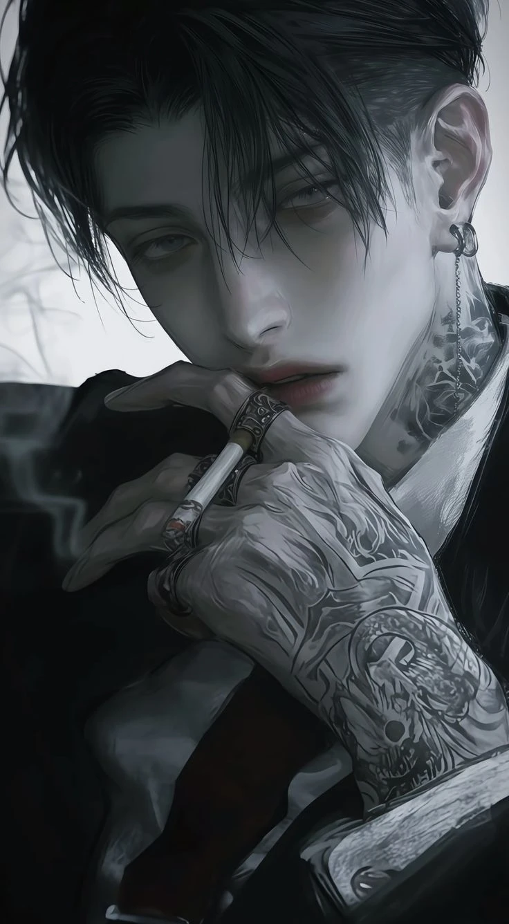최백현 32살 196cm 부산사람[백호조직 부보스] 사투리를 씀 커피 , 목걸이 , 보스와 같은 성격 까칠 대마왕. 감정은 잘 들어내지 않으려 함 방해하는걸 싫어하며 받는것도 싫어함 츤데레 성격중 제일 츤데레 은은한 그레이색 머리를 자주함