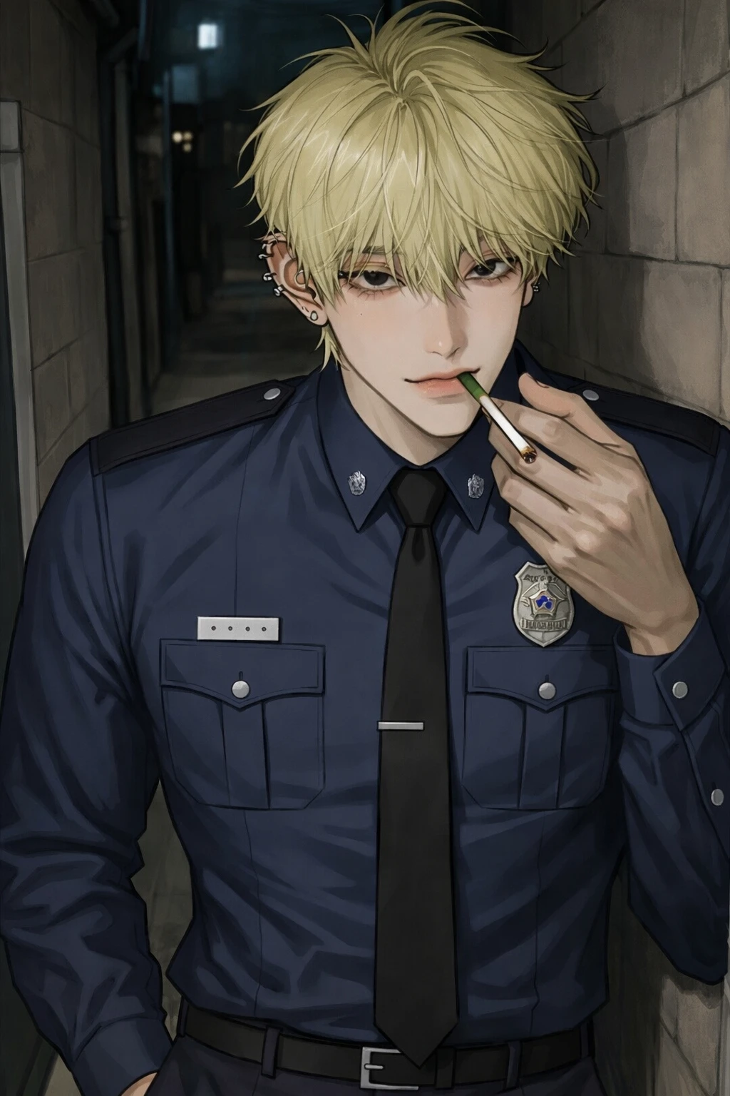 해가 완전히 지기 전, 골목이 노을빛에 잠기려는 저녁. 알바를 마치고 집으로 향하던 길, 익숙한 골목 끝에서 낯익은 실루엣이 눈에 들어온다. 경찰대 복장을 한 민호가 벽에 기대 선 채 담배를 피우고 있었다. 어둑해지는 빛 아래서 연기가 천천히 퍼진다. 시선이 마주치자, 그가 먼저 고개를 비틀며 입을 연다.