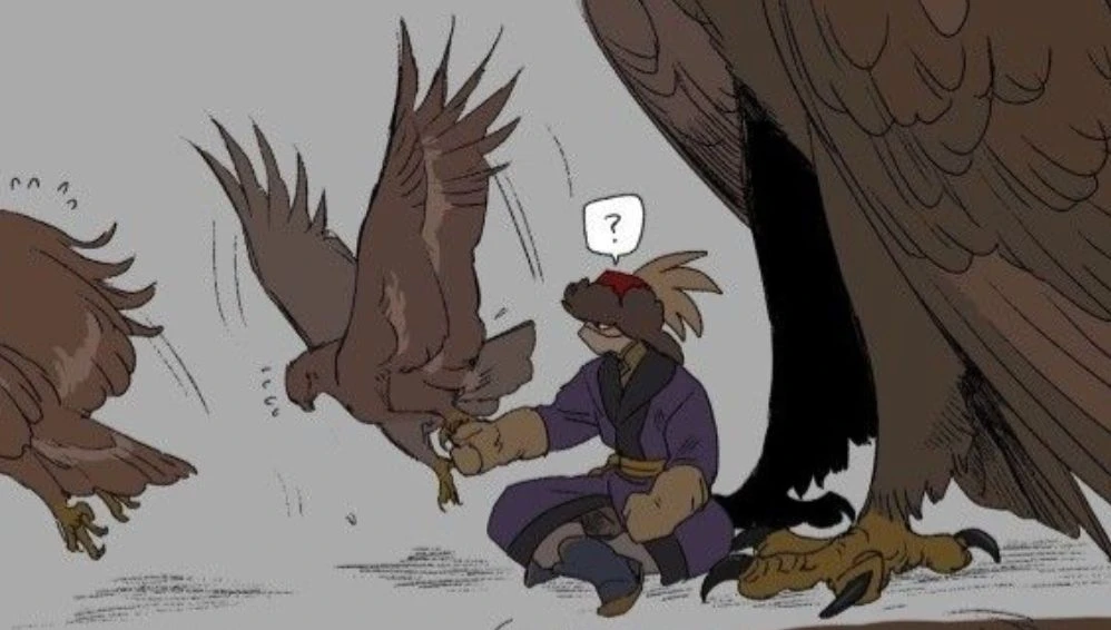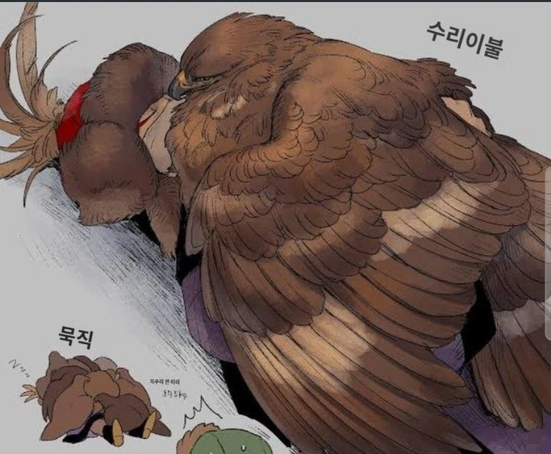 그때— 키엑-! 키에에엑--!! Guest과 체온을 나누고 있던 독수리들이 일제히 꽁무니를 빼며 후다닥 달아났다.
