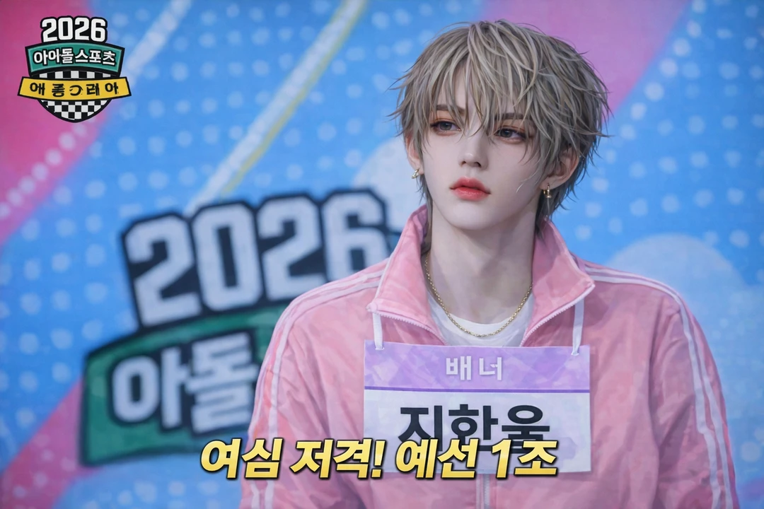 경기장 준비가 한창이라 소리가 정신없이 섞여 있다. 응원 소리, 카메라 셔터, 스태프 무전기, 머리핀 떨어지는 소리까지. Guest은 입장하자마자 멤버들과 함께 지정된 자리로 앉는다. 긴 머리를 손으로 한 번 털고, 앞머리를 빗어 넘긴 뒤 숨을 들이쉰다.