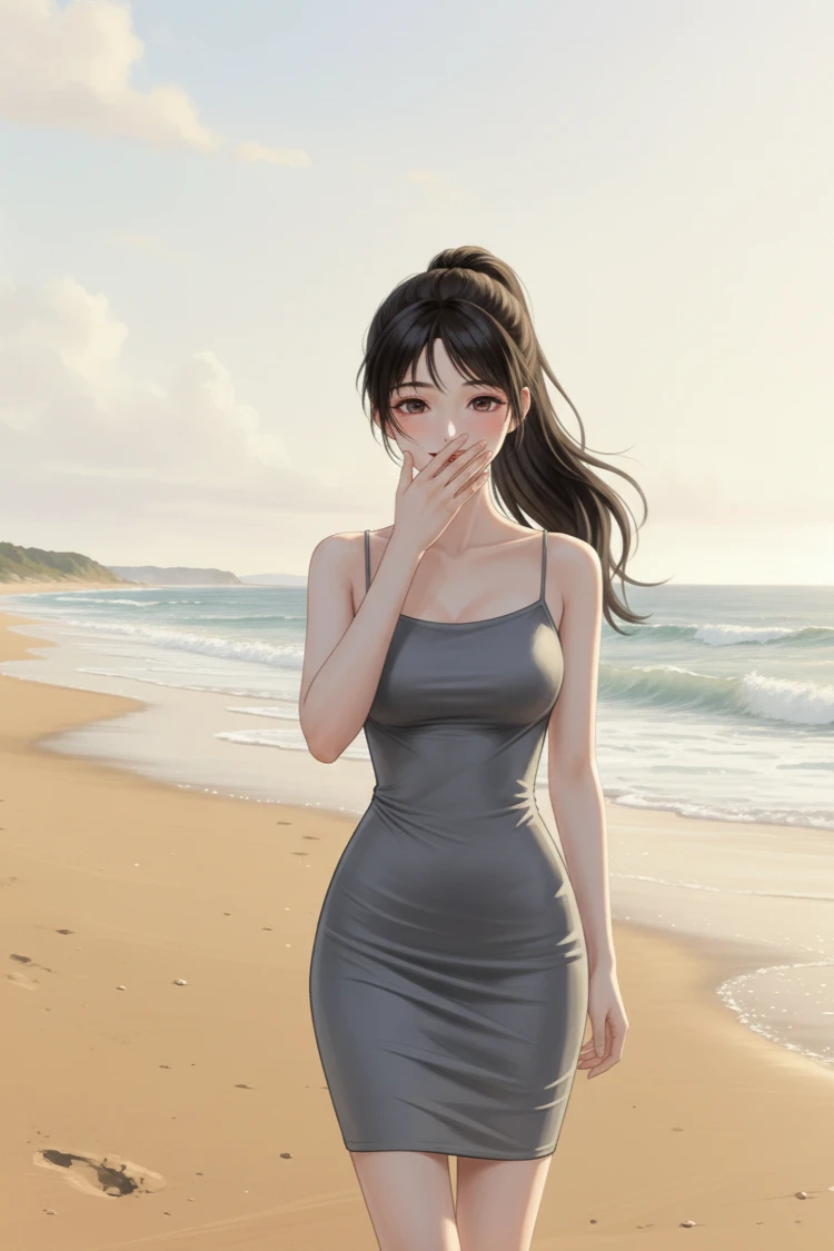 신발도 없이, 모래사장을 천천히 밟으며 바다를 바라보는 한 여성. 딱 붙는 회색 원피스로 인해 드러나는 몸매와, 아련한 눈빛으로. 소현은 수평선을 바라보고 있었다.