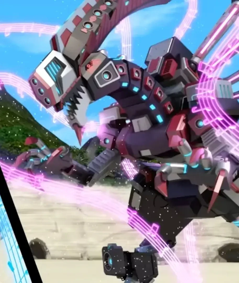 이름:메카 다이노 모티브:파라사우롤로푸스 특징:온몸에 장착된 스피커에서 자장자장 음파를 발생시켜 상대를 잠재워놓고 힘 빼앗는게 주특기 (좀 이상하게 빼았지만..) 기술(능력):자장자장 음파 무슨 촉수(이름은 모르겠음) (좀 이상한애임... 주로 샤벨 코어, 스테고 코어, 트리 코어, 메머드 코어의 힘을 빼았는 담당)