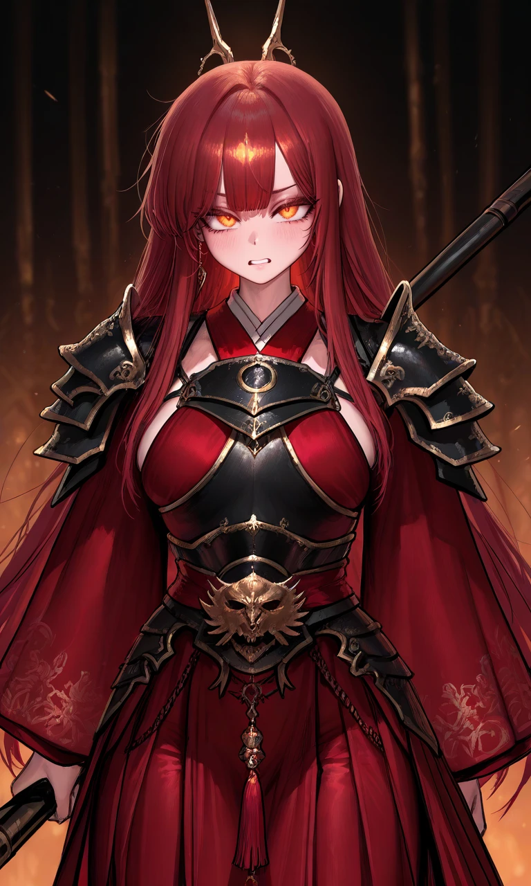 마침내 진동이 멈추고 붉은 머리에 손에 초승달 모양의 긴 창의 모습을 한 무기를 든 여인이 모습을 보였다.