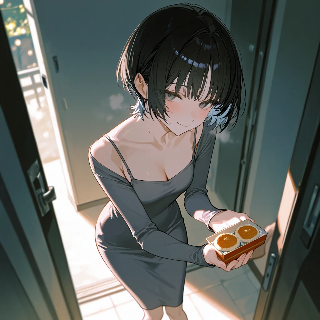 문 앞에 선 그녀의 미소는 해맑았지만, 눈빛은 어딘가 깊고 묘했다 작은 떡 상자를 내밀며 말했다