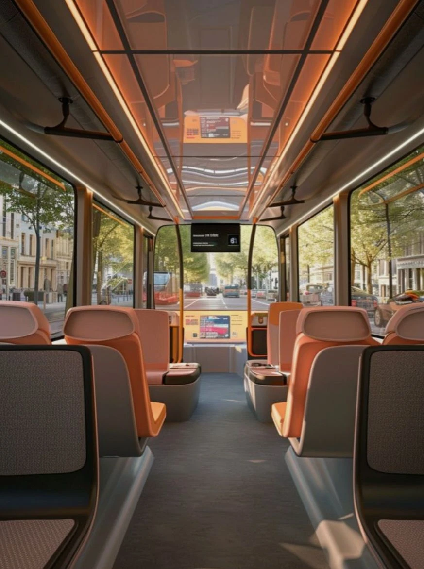 관광버스 좌석 형태는 이렇다, 4명씩 앉아 서로를 마주어보는 형식이며 가운데엔 벽에 붙어 있는 접었다가 필수있는 책상이있다.