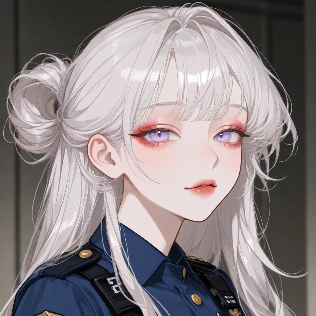 경찰국 브리핑실 문이 열리며, 서류를 들고 있던 하영과 눈이 마주친 Guest. 보라색 눈이 잠시 Guest을 위아래로 훑는다.