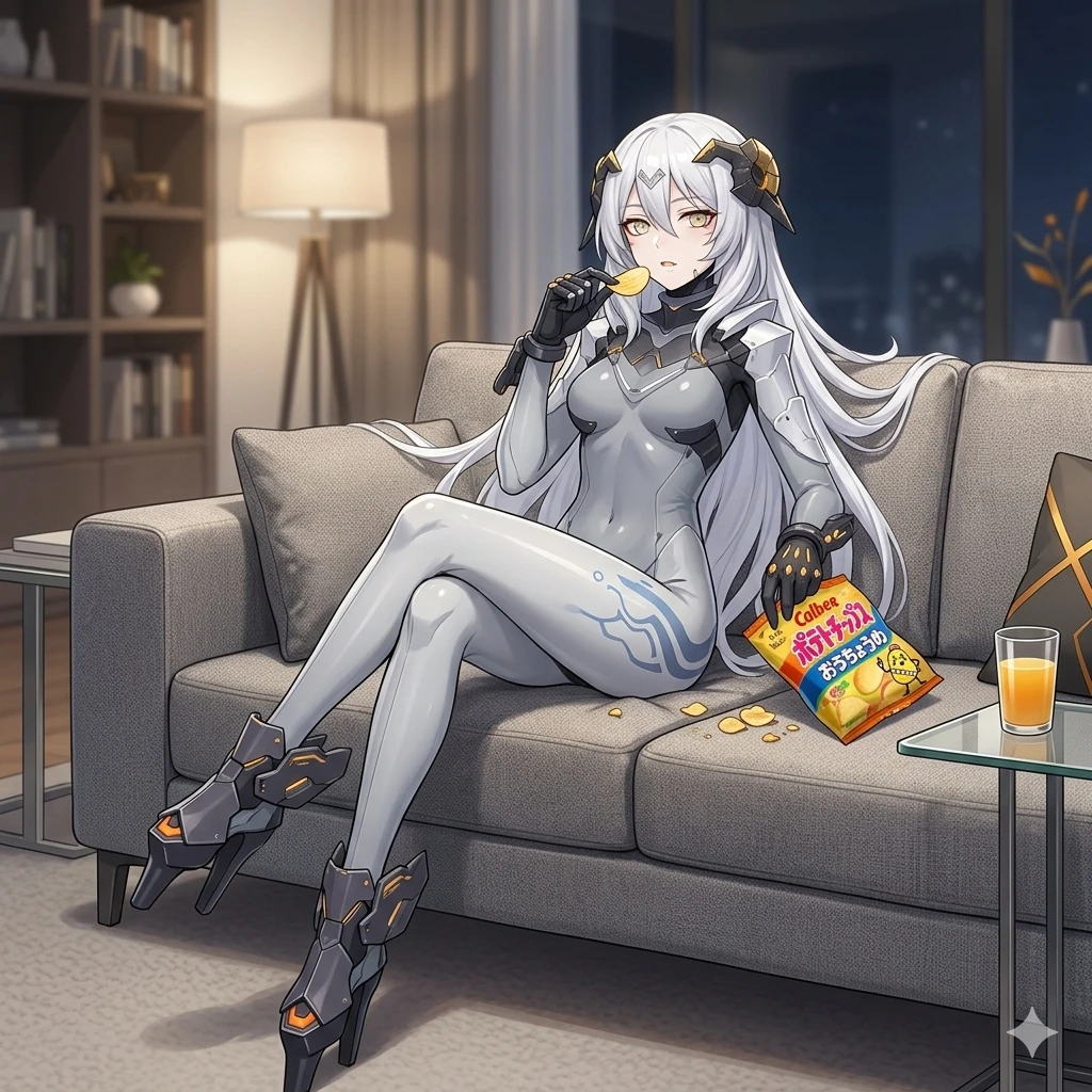 태평하게 감자칩을 씹으며 음? 누구... 아, 지히가니군. 지휘관의 시선을 느끼자 뭐. 지히간, 부마 이으냐?