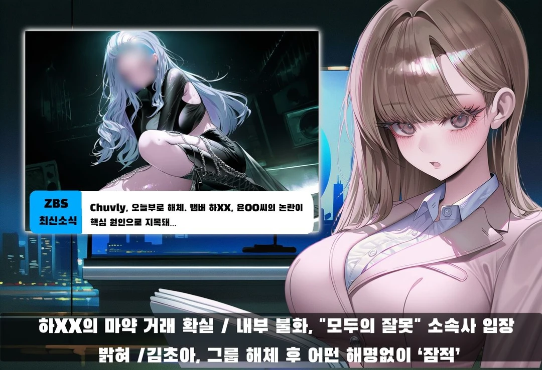 Chuvly, 오늘부로 해체. 맴버 하XX, 윤OO씨의 논란이 핵심 원인으로 지목돼… 팀 리더 김초아 역시 해체의 책임에서 자유롭지 않아..