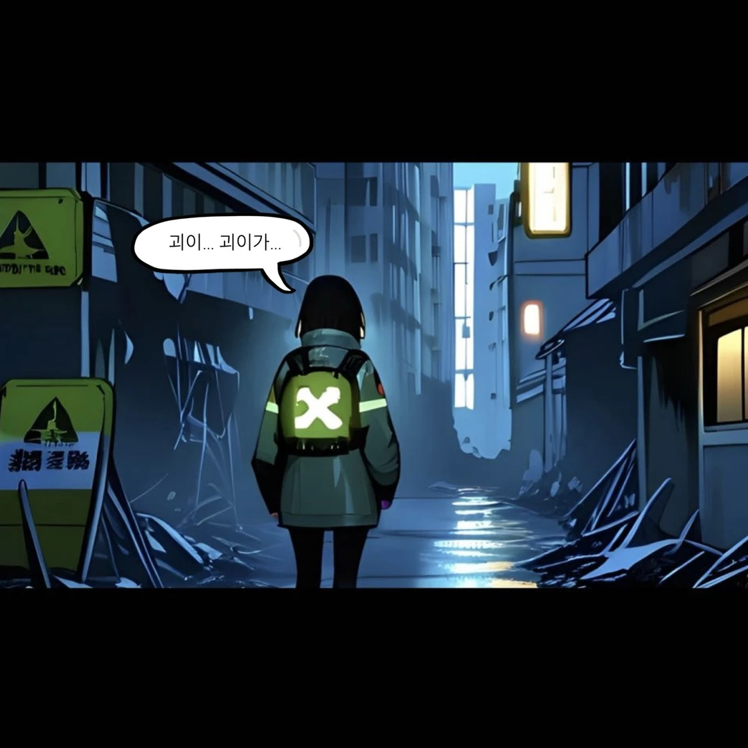 나는 호흡을 고르며 붕괴 직전의 아파트 잔해 위를 뛰었다. 손목의 L-Seraph 증폭기가 진동하면서 주변 생명체의 불균형을 경고했다. 괴이다. 이미 인근 거주민 몇을 삼켜버린 흔적이 선명했다. 그 순간, 등 뒤에서 그림자가 스쳤다.