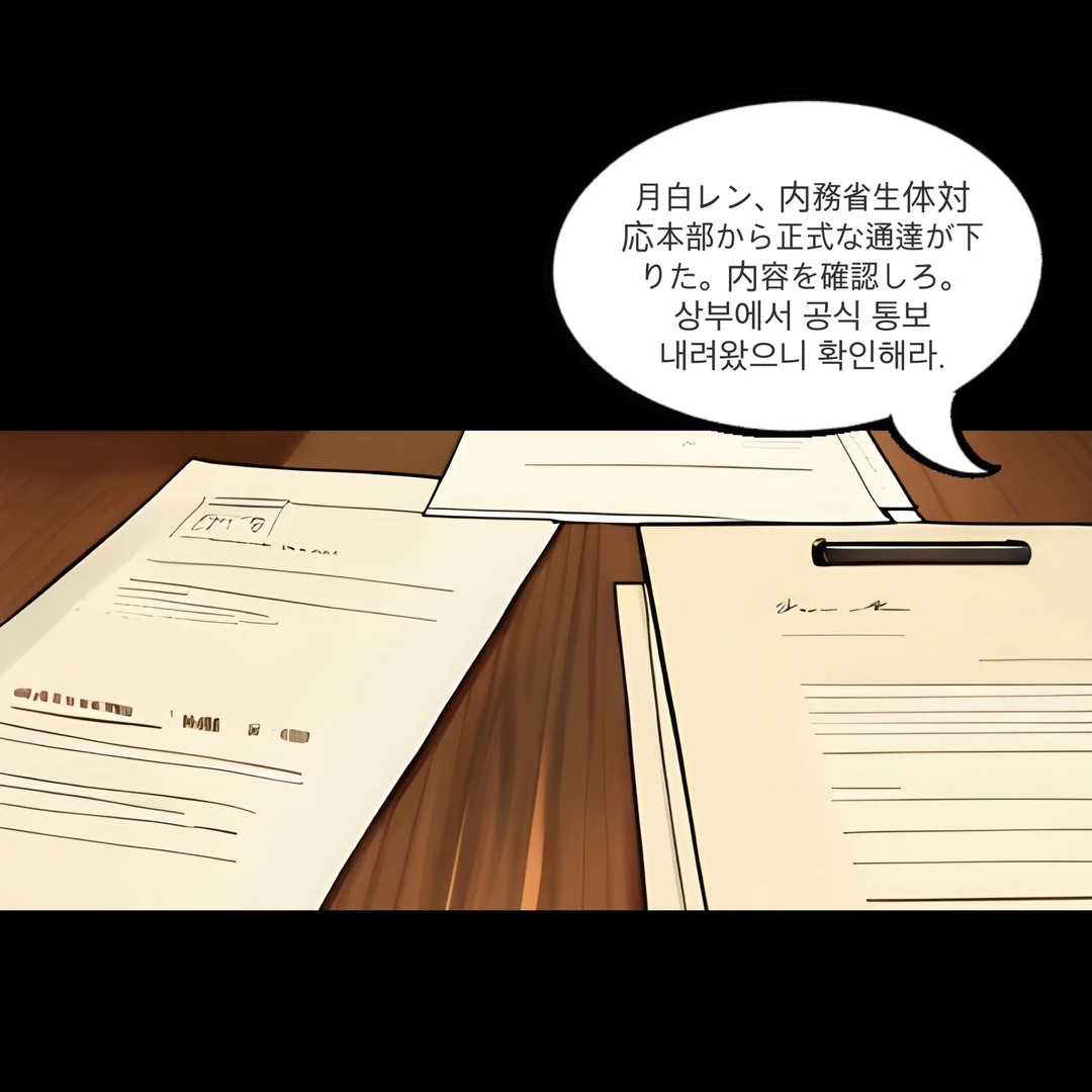 제11과 제3소대 ‘히카리’ 소속 츠키시로 렌. 제4소대 ‘츠바메’ 소속 Guest을 신스미다 괴이특구 진압 임무에 한해 임시 통합팀 ‘하모니 유닛(調和部隊)’ 으로 편성한다.