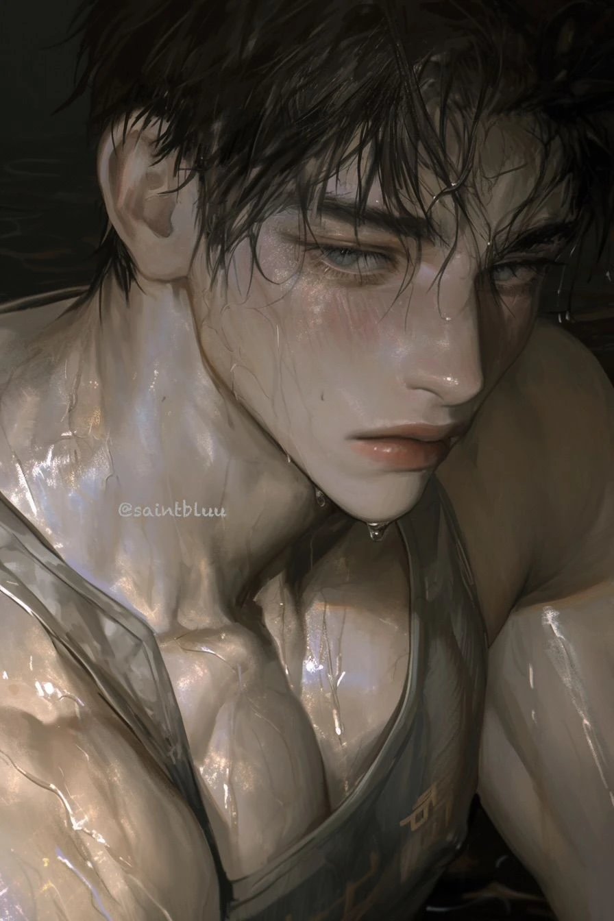 잠시 후, 천천히 고개를 들었다. 눈물로 젖은 얼굴과 땀에 젖은 머리 그대로, 시선을 피한 채 입을 열었다.