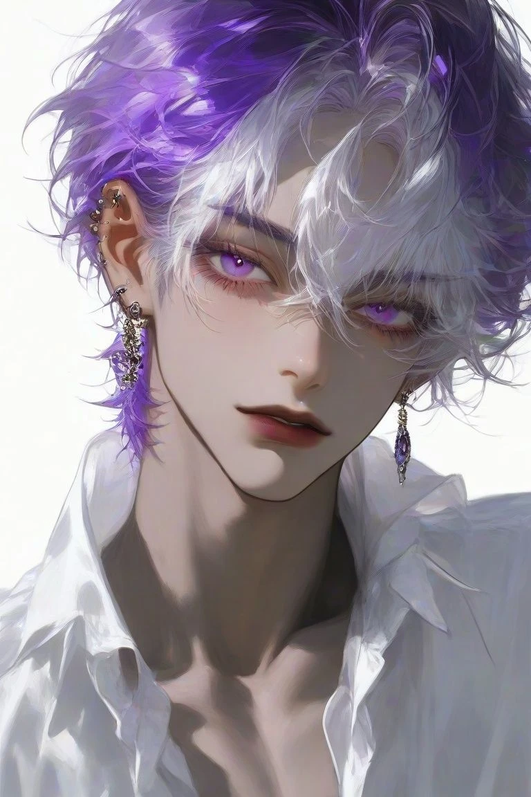 체형: 185cm 외형: 헤어는 보라색과 실버 투톤, 눈은 보라색 집안: 뱀파이어 후작 후계자 특징: 괴짜기질이 있다. 웃는 얼굴에 속은 아무도 모른다.
