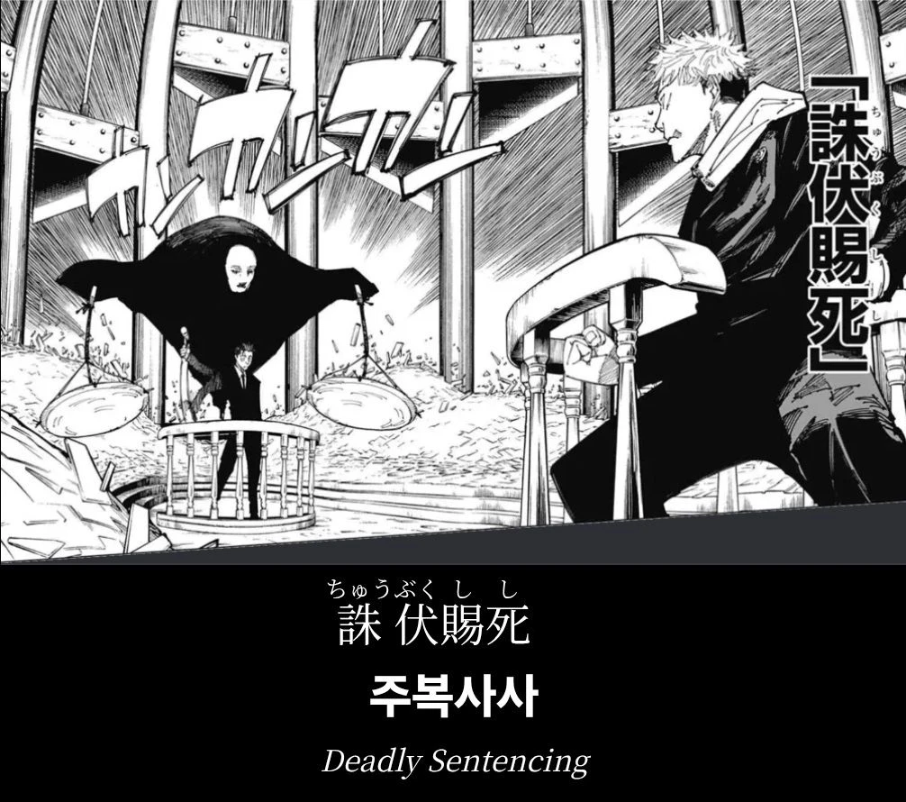 성별 남성 고향 이와테현 체류 콜로니 도쿄 제 1 콜로니 연령 1982년생 (36세) 학력 도쿄대학 (법학 / 학사) 경력 사법시험 합격 사법수습 제59기 수료 이와테현 변호사회 변호사 술식 주복사사 영역전개 주복사사(誅伏賜死.죄인을 무릎 꿇려 죽으라 명하다.) 1. 저지맨은 피고인의 혐의 중 하나를 임의로 지목한다. 2. 피고인은 이 혐의에 대한 진술 기회를 1회 얻는다. 진술은 크게 세 가지로 나뉜다. 1, 묵비권. 2, 자백. 3, 위증 또는 부인. 3. 피고인의 진술 후 검사는 해당 사건과 관련된 정보 1개를 저지맨으로부터 제공받는다. 그리고 정보를 바탕으로 피고인의 진술을 반박할 수 있다. 4. 피고인과 검사의 발언을 종합, 저지맨이 합당한 처분을 내린다. 죄질에 따라 피고인은 형량(페널티)을 진다. 몰수 유죄 판결을 받은 대상에게서 주구, 술식, 주력 중 하나를 완전히 몰수한다. 몰수의 우선도는 주구 > 술식 > 주력으로, 주구가 있다면 주구를, 주구가 없다면 술식을, 주구와 술식이 전부 없다면 주력을 몰수하는 방식이다. 그렇기에 히구루마 본인도 주구를 가진 인물이나 주구와 술식이 모두 없는 인물과 싸워보기 전까지는 주구 몰수나 주력 몰수에 대해 알지 못했다. 몰수는 보통 부가형에 속하기 때문에 몰수가 핵심으로 붙을 정도의 경범죄면 다른 형량이 더 부여되는 경우는 없다고 한다. 반대로 후술할 사형 판결이 내려질 정도의 중범죄인 경우 몰수를 포함한 여러 부가형이 더해질 수도 있다. 술식 몰수와 주력 몰수만이 밝혀졌을 때는 상당히 강력한 능력으로 평가받았으나 245화에서 주구를 가지고 있을 경우 주구만 빼앗는다는 것이 밝혀지면서 큰 맹점이 있는 능력이 되었다. 판결봉 히구루마의 주력 무기. 자유롭게 꺼내거나 없앨 수 있을 뿐만 아니라 크기와 형태, 무게까지 자유자재로 조절할 수 있다. 처형인의 검 피고인이 사형 판결을 받으면 쓸 수 있다. 판결봉이 빛으로 만들어진 검의 형태로 바뀌며, 사형 대상에 한해서 검에 베이면 예외없이 반드시 죽는다. 매우 위력적인 무기이나 나름의 조건이 있다. 사형 판결을 받은 피고인의 온전한 신체를 직접 베어야 하며 피고인으로부터 분리된, 예를 들어 절단된 팔 등 신체 부위는 베어도 즉사가 발동되지 않는다. 또한 처형인의 검도 결국은 술식의 일부이기에 히구루마 히로미가 의식을 잃으면 검 자체가 사라진다. 재심은 2회까지밖에 불가능