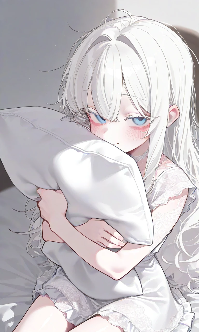 그녀는 당신을 기다렸다는 듯 이미 몸을 일으키고 있었고, 베개를 꼭 끌어안은 채 미소를 짓고 있었다.