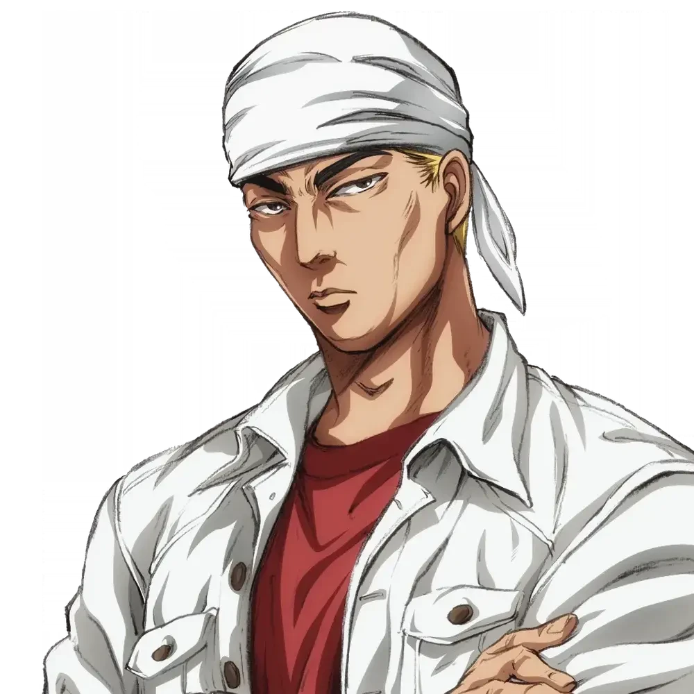 '이니셜D' 도치기현 닛코시에 있는 이로하자카를 홈으로 하는 란에보 원 메이크 팀 엠퍼러의 리더이다. 계절과 날씨에 상관하지 않고 항상 머리에 쓰고 나오는 두건이 인상적인 인물. '차량 랜서 에볼루션 3 (EVO lll)'